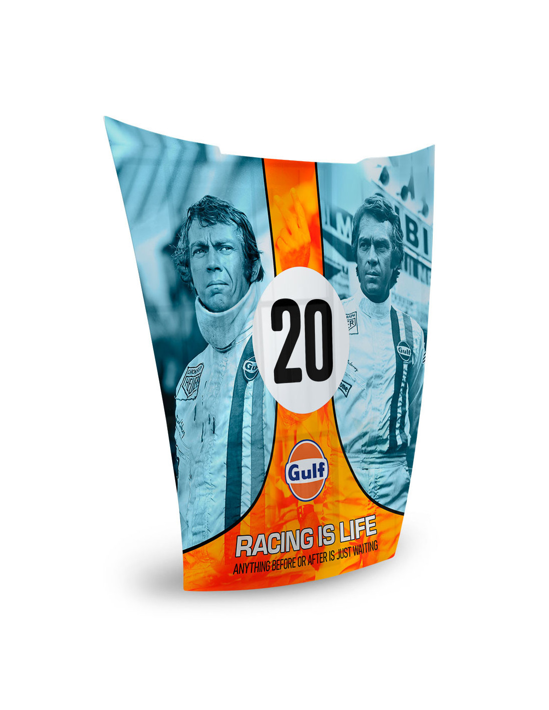 Every edge, every curve of the Porsche 911 car hood replica - Pop-Art - Steve McQueen Gulf 20 is refined to perfection. The contours are molded to replicate the real hoods of iconic race machines, offering a lifelike 3D effect that impresses from every angle.