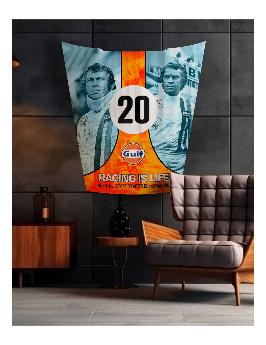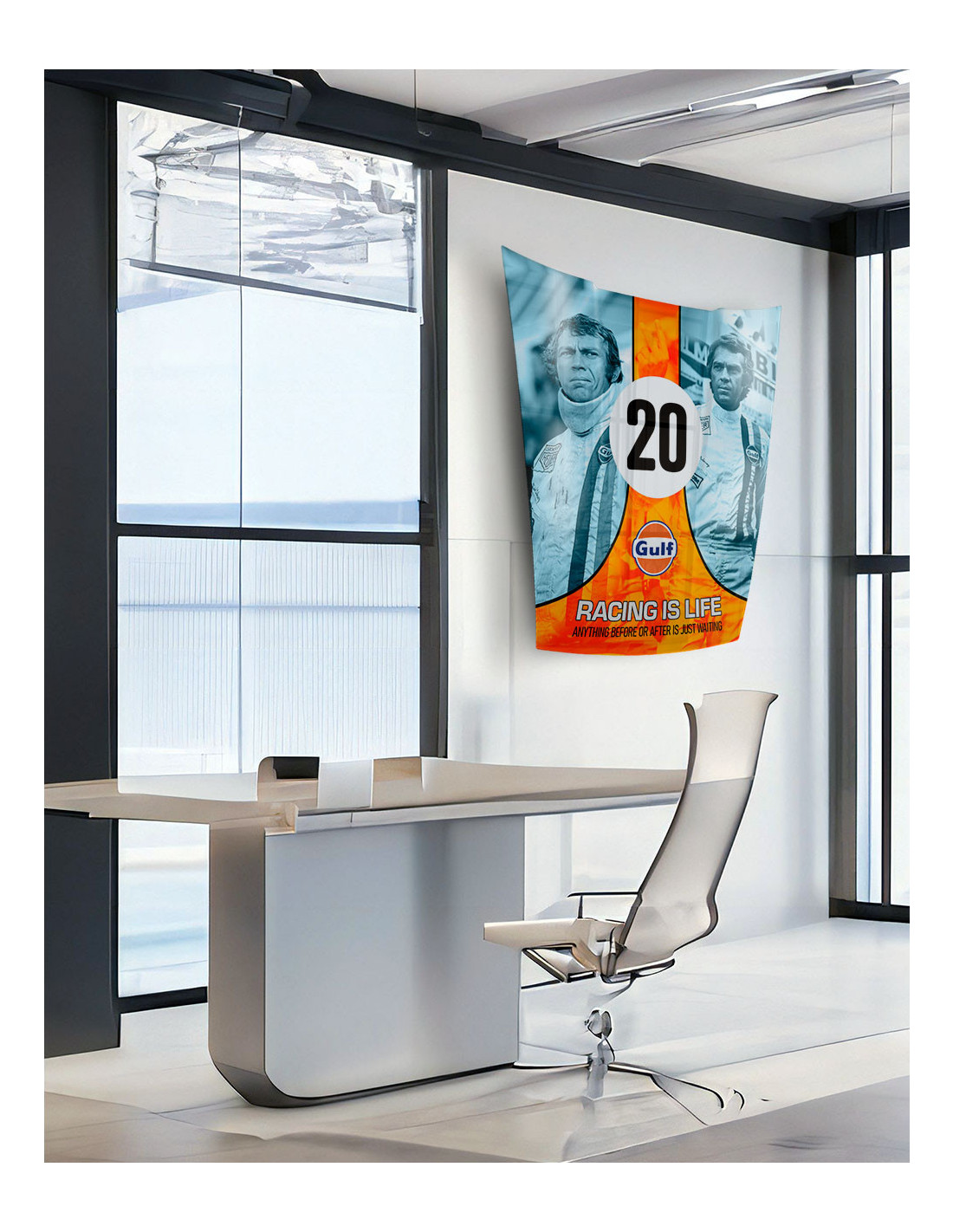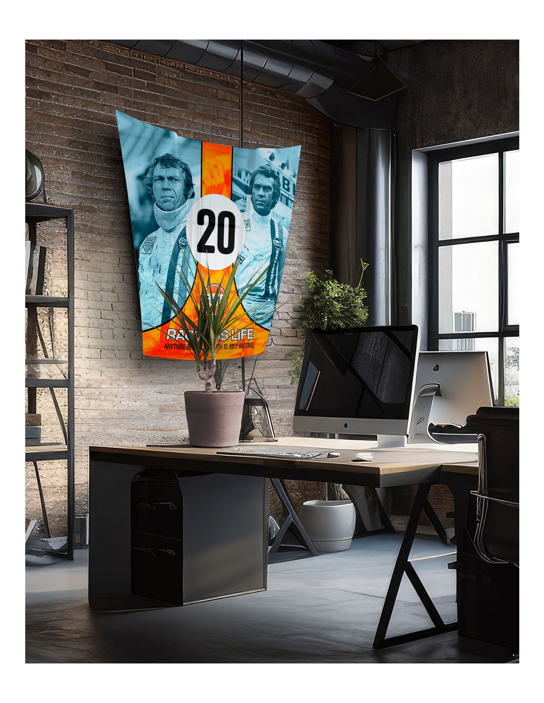 The bold design elements are a nod to racing icons that dominated the tracks. Whether it’s a historic number, signature stripes, or iconic branding, the Porsche 911 car hood replica - Pop-Art - Steve McQueen Gulf 20 reflects a rich legacy of speed, style, and performance.